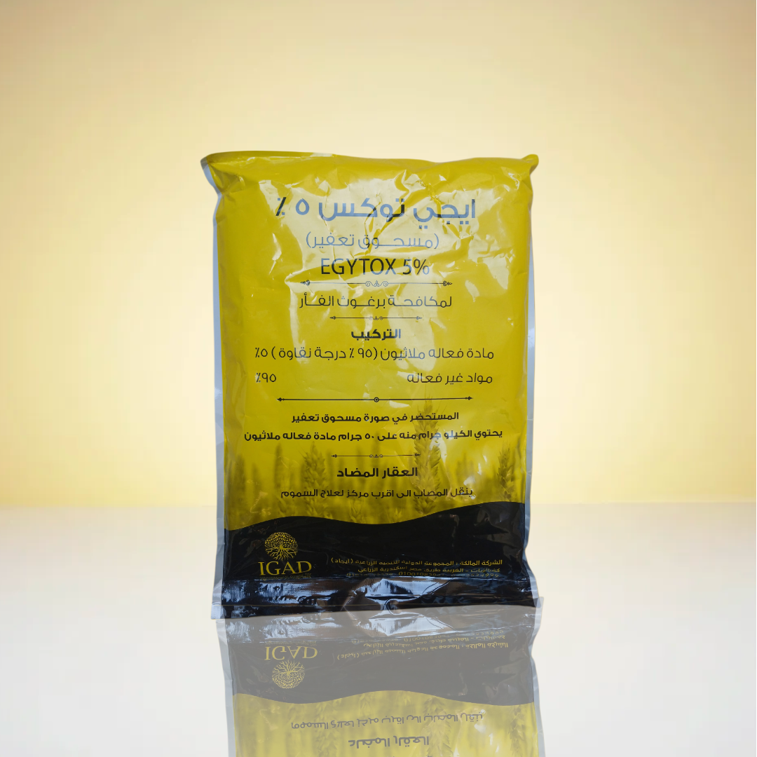 إيجي توكس 5% هو مبيد حشري فعّال ومُصمَّم بعناية للقضاء على الآفات الزراعية والحشرات الضارة. يحتوي هذا المنتج من شركة إيجاد على تركيبة قوية تشمل 5% من الملاثيون، مما يضمن حماية فعّالة وطويلة الأمد للمحاصيل الزراعية.
