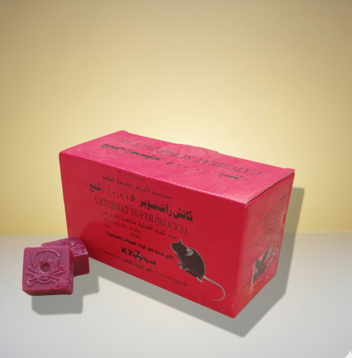 وصف: كاتش رات سوبر شمع هو منتج متخصص للقضاء على الفئران بفعالية عالية. يحتوي هذا الشمع على 0.005% من مادة البروماديولون، وهو مركب فعال يعمل على تعطيل نظام التخثر في الفئران، مما يؤدي إلى موتها بشكل تدريجي. يأتي هذا المنتج على شكل مكعبات من الشمع، مما يجعله جذابًا للفئران ويسهل تناوله.
