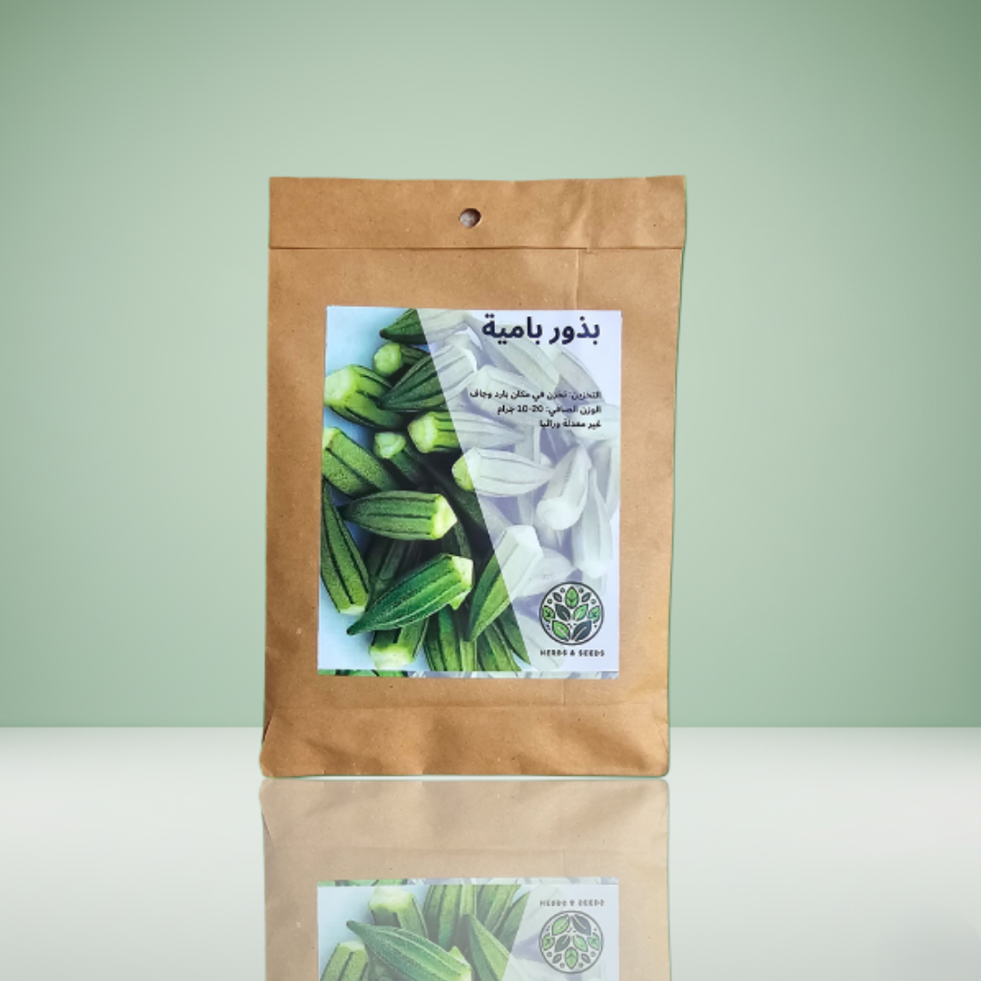 وصف مختصر: بذور البامية توفر لك الفرصة لزراعة هذا النبات اللذيذ والمغذي في حديقتك أو مزرعتك. تأتي بذور البامية في كيس ورقي يزن ما بين 10 إلى 20 جرام، وهي مختارة بعناية لضمان أعلى نسبة إنبات ونمو سريع. البامية نبات صيفي يُفضل زراعته في فصل الربيع أو أوائل الصيف للحصول على محصول وفير.
