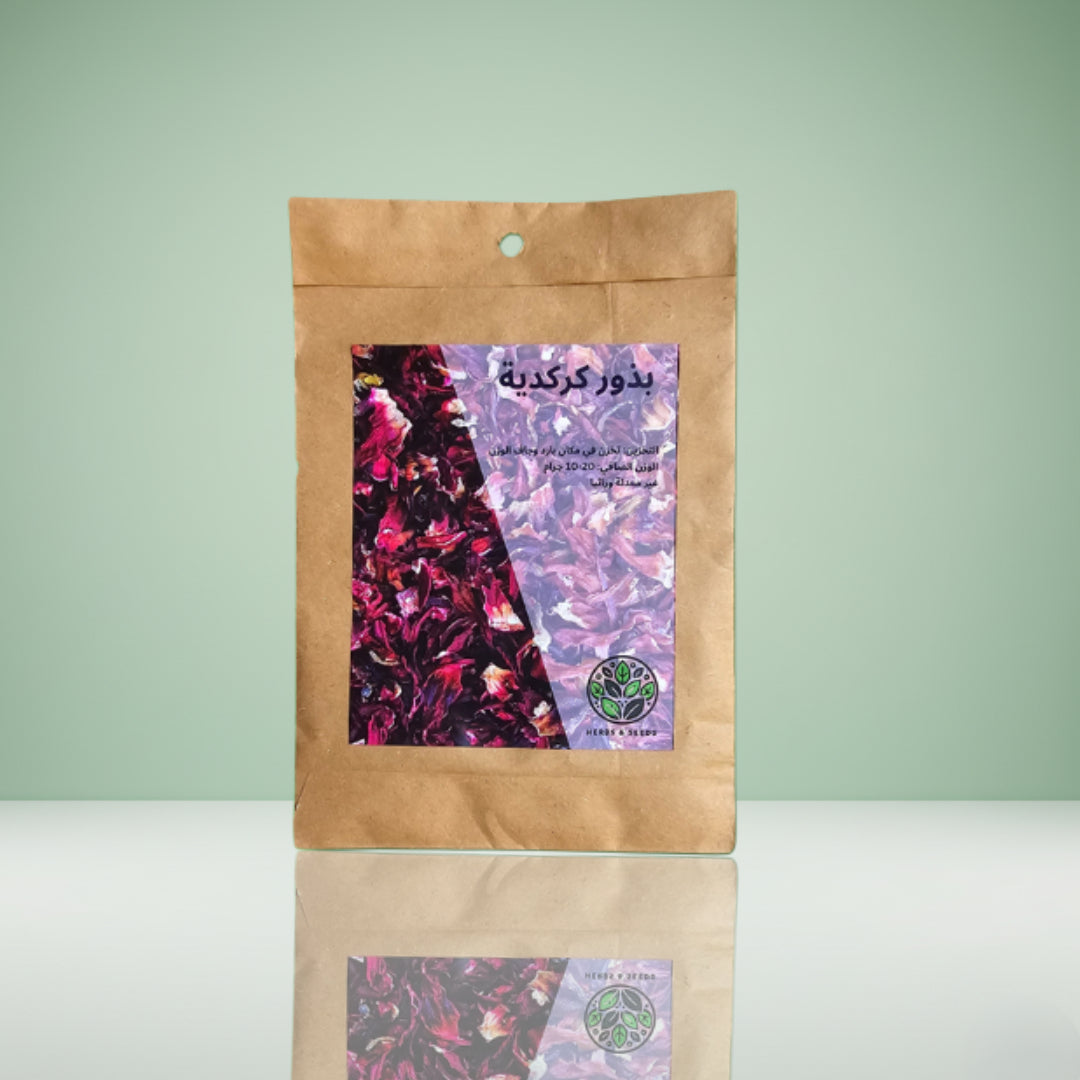 - الوزن: الكيس يحتوي على 10 إلى 20 جرام من بذور الكركديه.