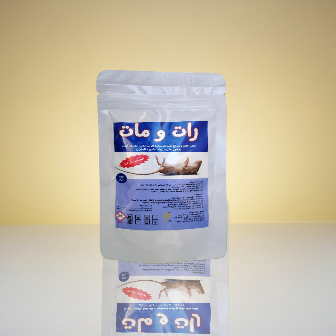 طُعم جاهز وشهي بتركيبة قوية تحتوي على فوسفيد الزنك بنسبة 2%، يقتل الفئران فورياً بعد التغذية عليه، ومصنوع من ذرة، فول سوداني وطعم الجبنة لجذب القوارض حتى في الأماكن ذات الإصابة العالية.